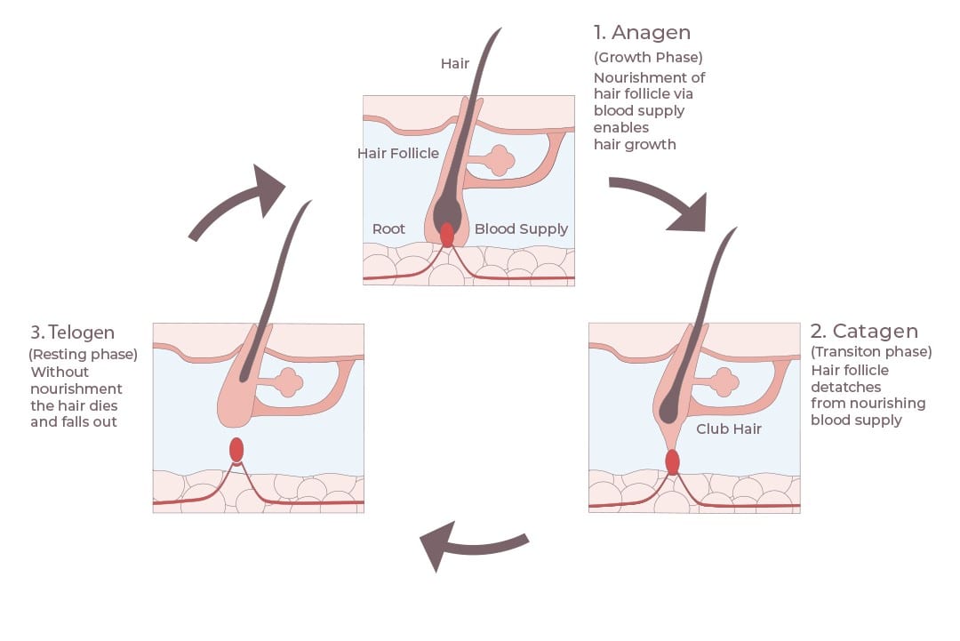 Permanent hair removal takes time and will need multiple sessions to cover all stages of the hair growth. The various stages include Anagen which is the growth phase, Catagen or the shedding stage where the hair follicle detaches from nourshing blood supply, and Telogen which is the shedding phase where the hair follicle dies out.
